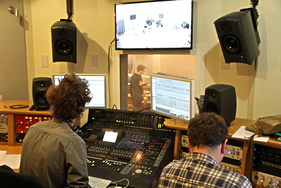 The first part of the afternoon saw Ben conducting a quartet from Birmingham from 15:00 to 18:00 hrs, going over the very intense phrases and sections of the music that the strings were there to record.